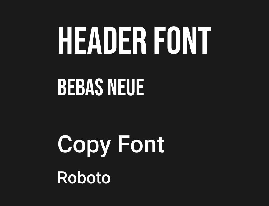 As a header font, I decided on Bebas Neue, which is a sans-serif font written in uppercaps. It is also very tall and narrow with a high readability which ensures a good usability. At the same time, the font's attributes contribute to a modern and sporty look with strength.