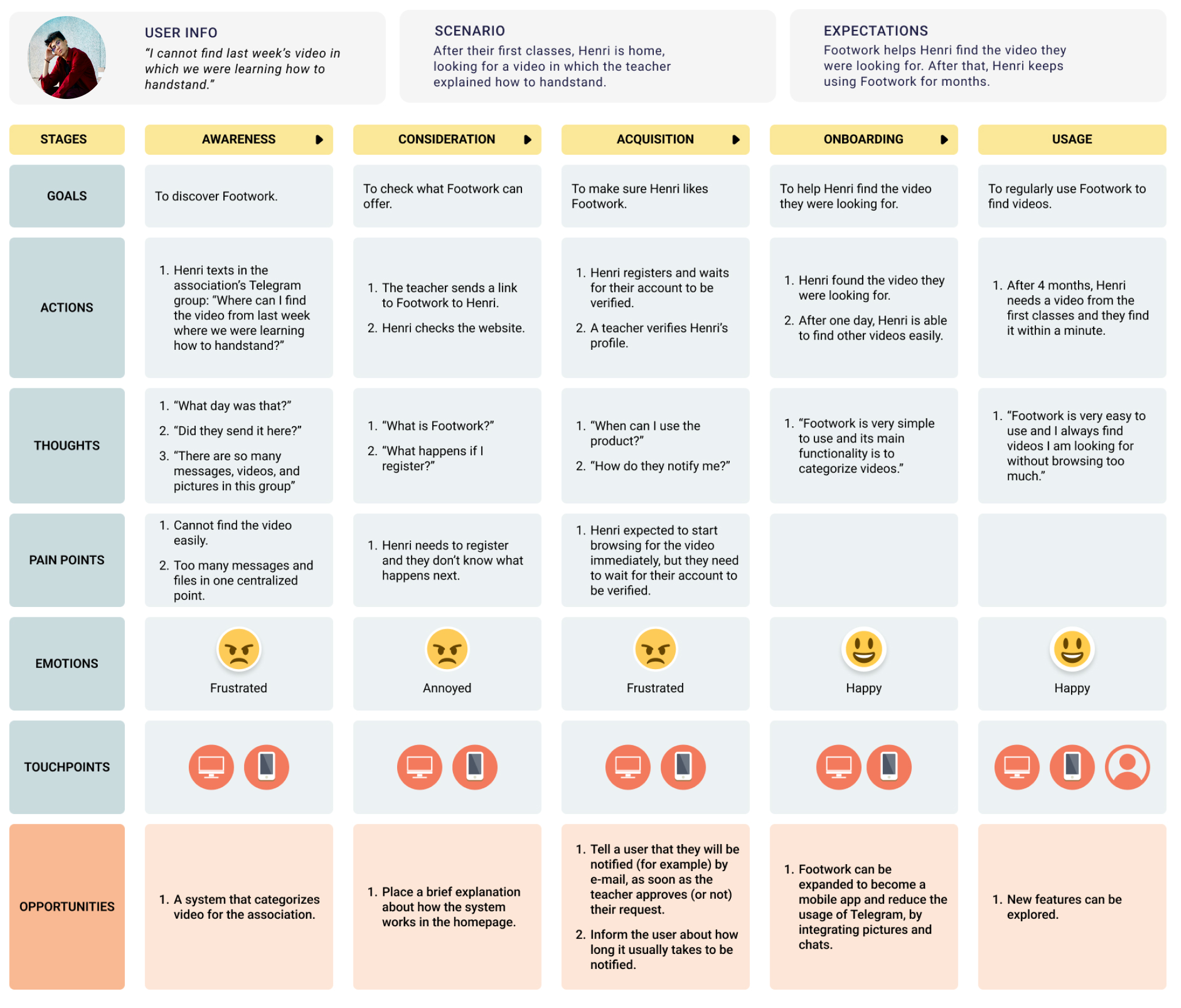 Henri Handstand's scenario is especially highlighted in a user journey, which another group member created.